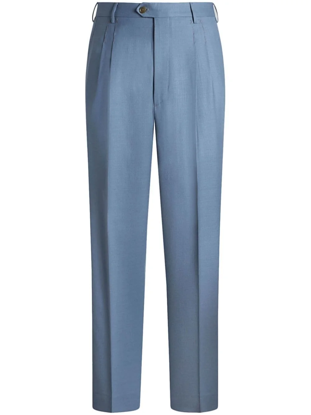 pleated trousers Highlights - Light blue - Wool blend - Pressed crease - Front button and zip fastening - Belt loops - Slip pockets to the sides - Two rear welt pockets - Straight leg Made in Italy Composition Lining: Viscose 60%, Acetate 40% Outer: Wool 100%