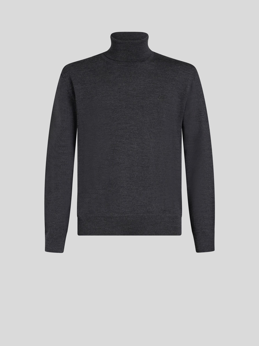 High neck wool jumper decorated by logo with Pegaso on the chest. PRODUCT DETAILS • 100% virgin wool • Regular fit • High neck • Ribbed borders • Made in Italy • The model is 188 cm/74 inches tall and wears size M