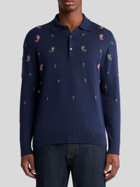 Long-sleeved polo shirt in a solid-colour cotton/cashmere-blend knit. The model is decorated by Paisley detailing with crystal embellishment on the top. • Regular fit • Polo collar • Long sleeves • Tonal branded-button closure • Ribbed finishes • Made in Italy • The model is 6' 1½" (187 cm) tall and wears a size M PRODUCT DETAILS • 85% cotton, 15% cashmere • Embellishments: crystal