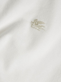 Cotton pique polo shirt embellished with floral Paisley-printed details. This model is embellished with a tone-on-tone embroidered Pegaso symbol and ETRO logo on the chest. • Regular fit • Made in Italy • The model is 6’1”(186 cm) tall and wears a size M PRODUCT DETAILS • 100% cotton