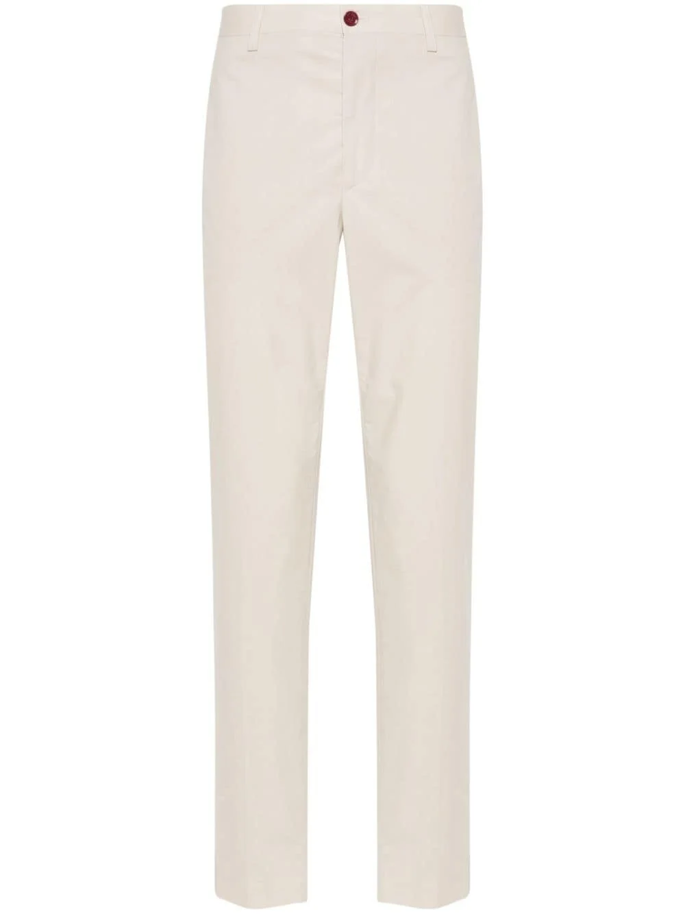 poplin chinos Highlights - Almond beige - Stretch-cotton - Poplin texture - Front button and zip fastening - Belt loops - Two diagonal pockets to the sides - Two rear button-fastening jetted pockets - Tapered leg Made in Italy Composition Cotton 96%, Elastane 4% SIZE & FIT Model measurements Height 6 ft 2 in(1.87 m) Bust/Chest 38.18 in(97 cm) Hips 36.61 in(93 cm) Waist 29.13 in(74 cm) FittingInformation Designed for a slim fit, offering a comfortable fit that sits just away from the leg The unfinished hems allow for the length to be altered Made from a midweight stretch fabric, this piece offers elasticity and flexibility when worn