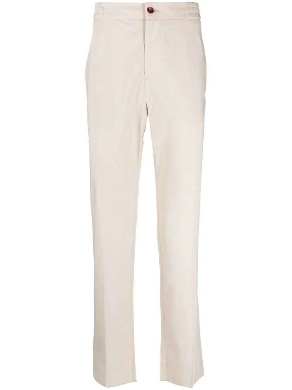 press-crease cotton trousers Highlights - Light beige - Stretch-cotton - Elasticated waistband with internal drawstring - Pressed crease - Front button and zip fastening - Slim cut - Two side slit pockets - Two rear patch pockets Made in Italy Composition Cotton 96%, Elastane 4% SIZE & FIT Model measurements Height 6 ft 2 in(1.87 m) Bust/Chest 36.41 in(92.5 cm) Hips 37 in(94 cm) Waist 29.52 in(75 cm) FittingInformation Designed for a slim fit, offering a comfortable fit that sits just away from the leg The elasticated waist allows for a comfortable fit Made from a midweight stretch fabric, this piece offers elasticity and flexibility when worn This piece fits true to size – take your usual size Washing instructions Hand Wash