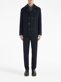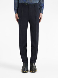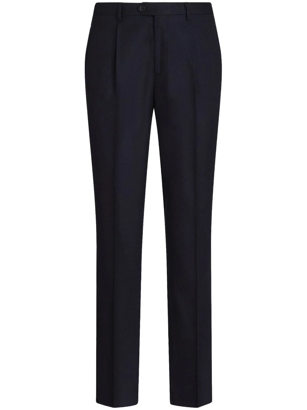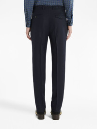 pressed-crease wool trousers Highlights - Navy blue - Stretch-wool - Tailored design - Pressed crease - Belt loops - Front button and zip fastening - Straight leg - Two side inset pockets - Two rear button-fastening pockets Made in Italy Composition Wool 98%, Elastane 2% SIZE & FIT Measurement FRONT RISE 12.2 in(31 cm) INSIDE LEG 33.85 in(86 cm) WAIST 39.37 in(100 cm)