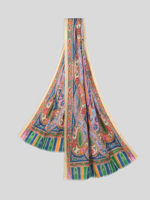 Cashmere and silk scarf with geometric print featuring floral and Paisley details. Completing the accessory are the slightly frayed short sides and an ETRO logo in the corner. • Size: 26.8 x 78.7 inches (68 x 200 cm) • Made in Italy PRODUCT DETAILS • 70% cashmere, 30% silk