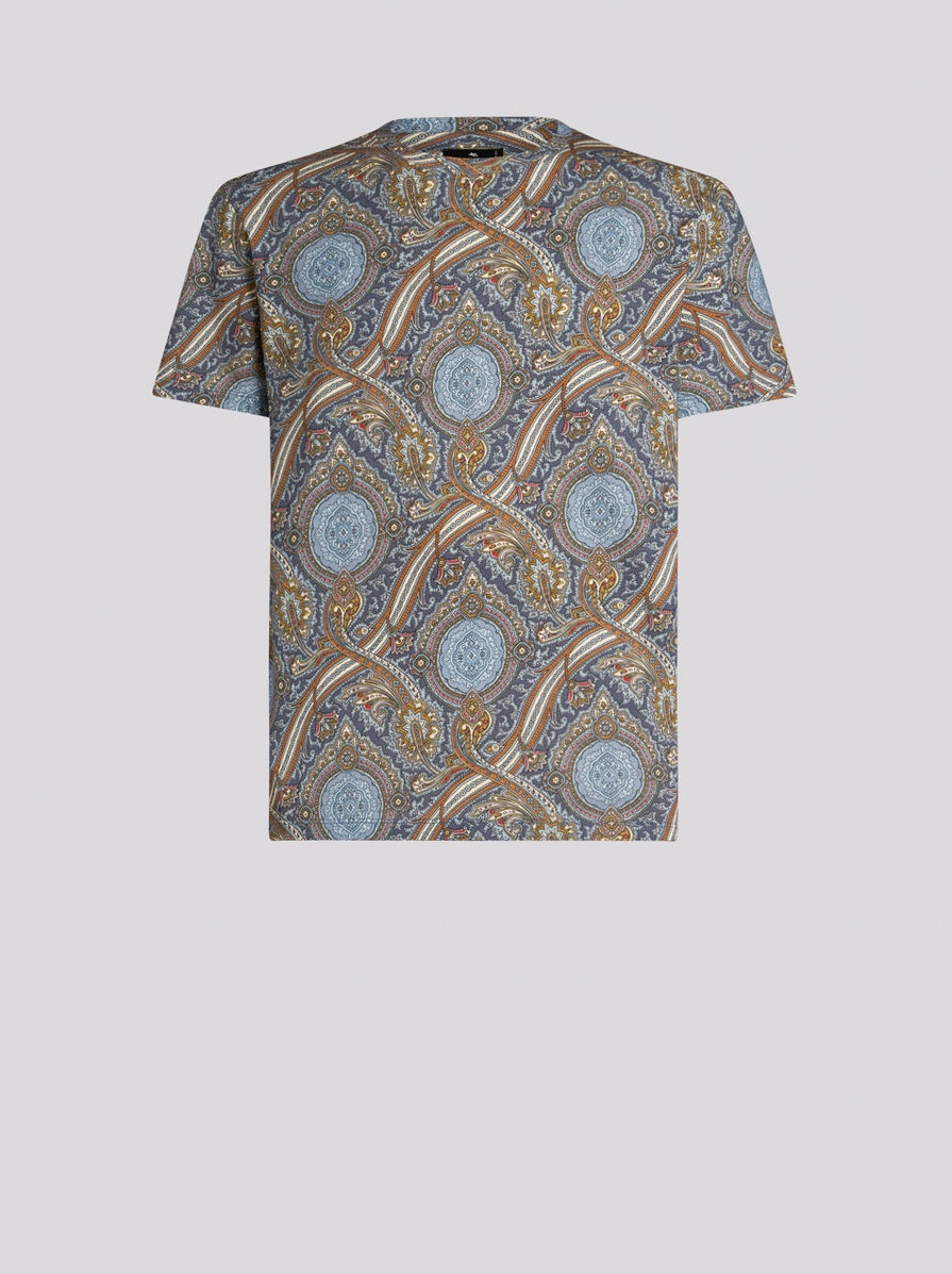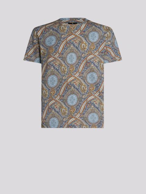 Cotton jersey T-shirt with decorative medallion print all over. This model is embellished with a tone-on-tone embroidered Pegaso symbol and ETRO logo on the back. PRODUCT DETAILS • 100% cotton