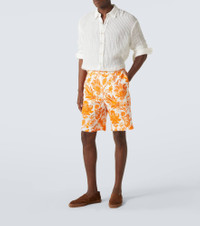 Printed linen Bermuda shorts