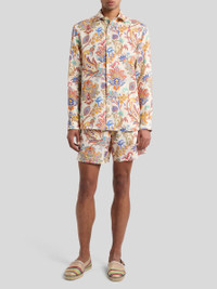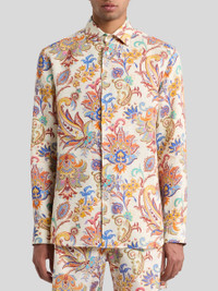 Pure linen shirt with decorative, multicoloured all-over floral print. • Roma regular fit • Pointed collar • Long sleeves • Double-buttoned working cuffs • Made in Italy • The model is 6' 1½" (187 cm) tall and wears a size 39 PRODUCT DETAILS • 100% linen
