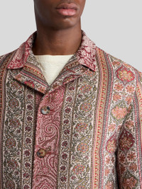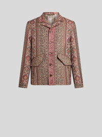 Lined cotton/wool-blend overshirt jacket with a Balmacaan-style collar. This style features an all-over nature-inspired, geometric print. • Loose fit • Balmacaan neck • Branded horn button closure • Slanted side pockets with flap • Working cuffs • Made in Italy • The model is 6' 1½" (187 cm) tall and wears a size M PRODUCT DETAILS • 59% polyester, 21% cotton, 20% wool • Lining: 53% viscose, 47% acetate