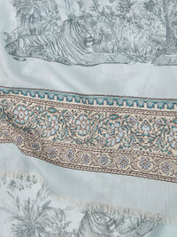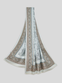 Wool/silk-blend scarf featuring nature-inspired and geometric designs. The frayed short sides add extra refinement to the accessory. • Size: 27.6 x 78.7 inches (70 x 200 cm) • Made in Italy PRODUCT DETAILS • 34% wool, 34% silk, 32% polyester