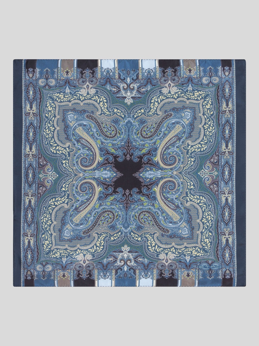 Silk pocket square with decorative Paisley print. PRODUCT DETAILS • 16.92 x 16.92 inches (43 x 43 cm) • 100% silk • Made in Italy