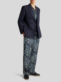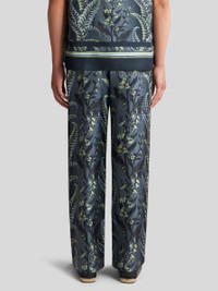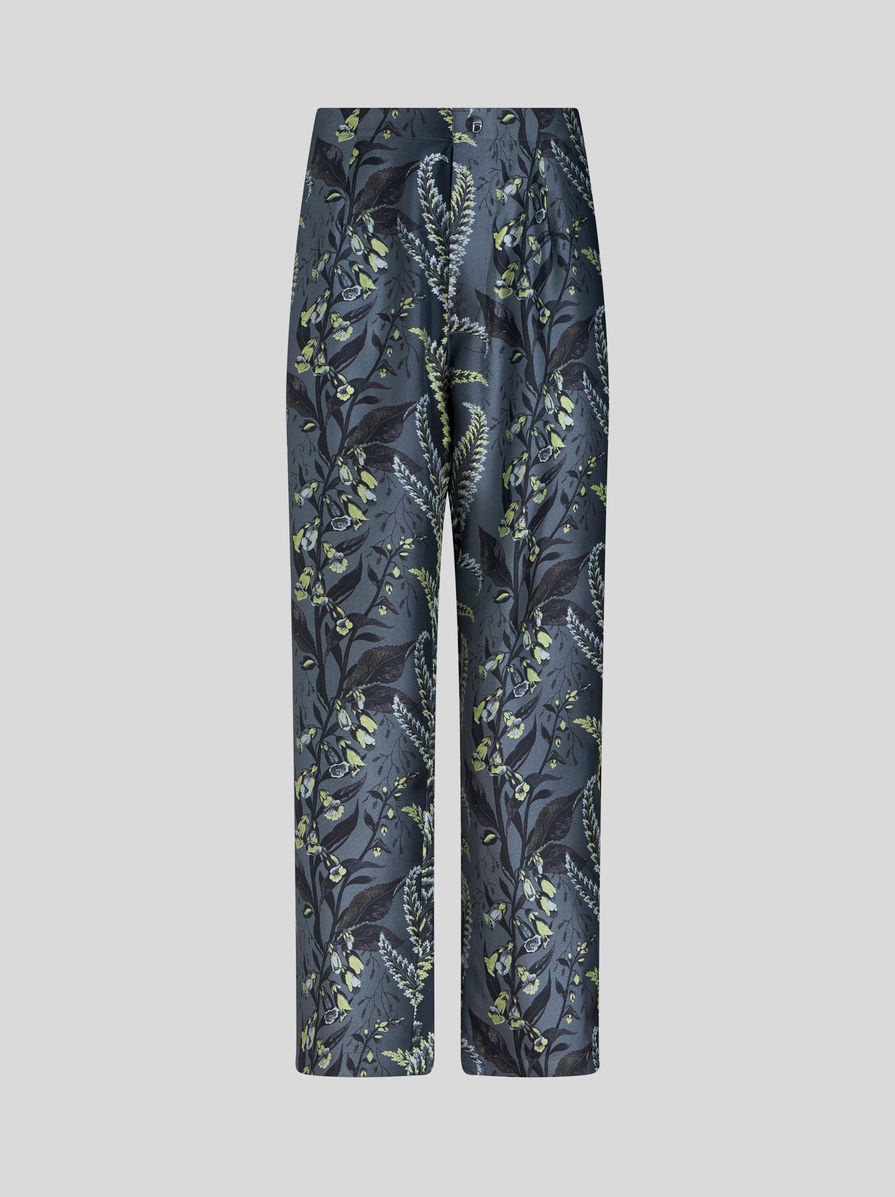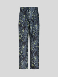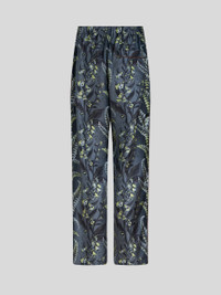 Silk trousers decorated with an all-over floral foliage print. This model is embellished with side trims. PRODUCT DETAILS • 100% silk • Piping: 100% polyester • Elasticated waist • Hidden button and zip fastening • Regular fit • Side slip pockets • Rear pocket • Made in Italy • The model is 188 cm tall and wears a size M