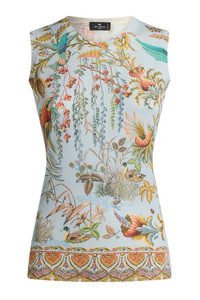DETAILS AND INSIGHT Etro printed slim fit cardigan in var. multicolor f.do azzurro. 45% Cashmere 55% Seta Professionally Cleaned Made In Italy Style WRKE0023-AKF21-S9881