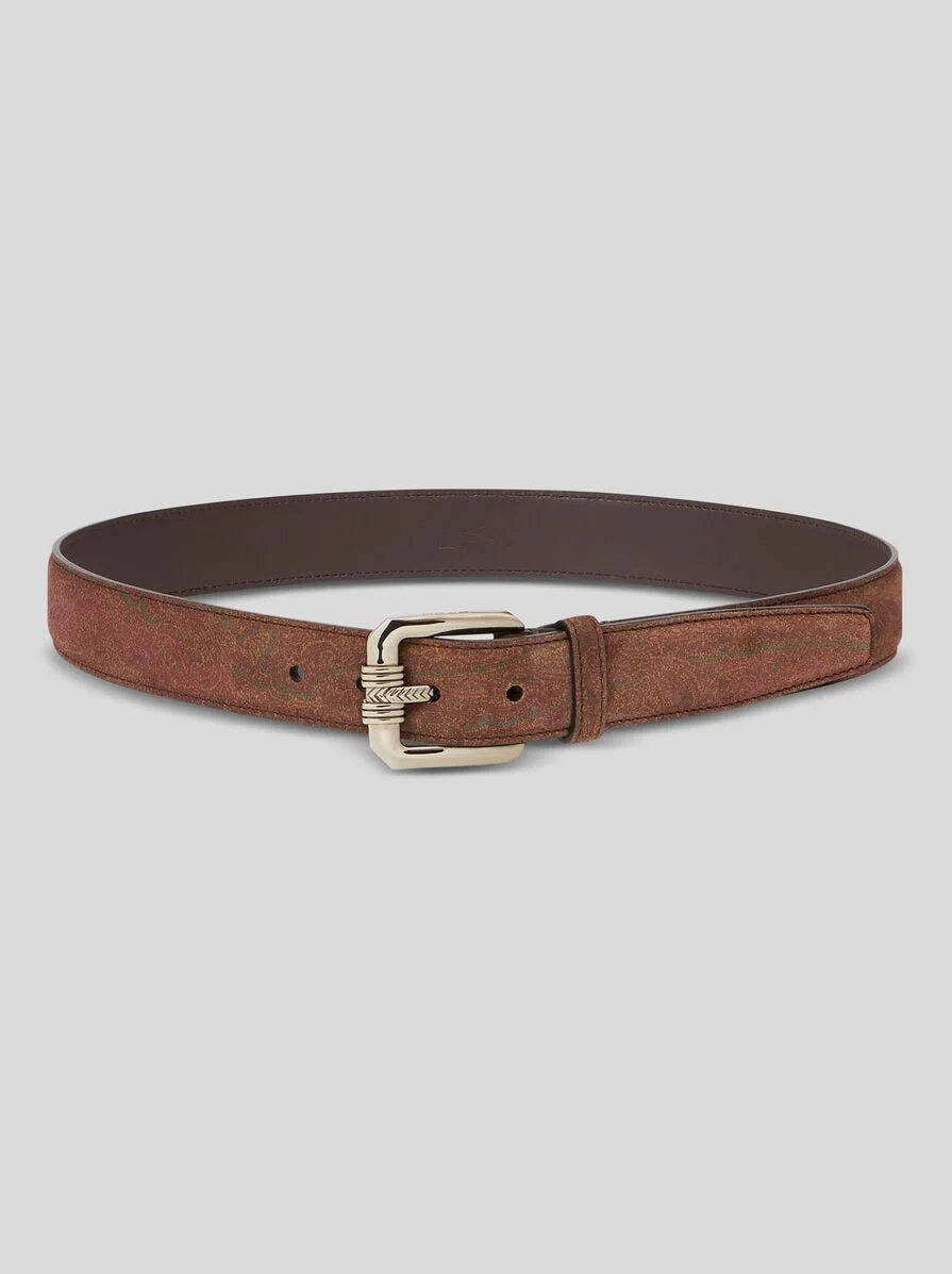 Soft suede belt embellished with the iconic Paisley print. Complete with classic adjustable prong buckle. • Height: 1.4 inches (3.5 cm) • Made in Italy PRODUCT DETAILS • Calfskin
