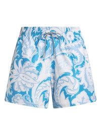 floral-print swim shorts Highlights - Blue - Elasticated drawstring waistband - Two side inset pockets - Rear flap pocket - Be mindful to try on swimwear over your own garments. Made in Italy Composition Polyester 100%