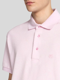 Pure cotton polo shirt featuring all-over tonal jacquard Paisley detailing. This model is embellished with an embroidered ETRO monogram and Pegaso symbol on the chest. • Roma regular fit • Branded buttons • Made in Italy • The model is 6' 1½" (187 cm) tall and wears a size M PRODUCT DETAILS • 100% cotton