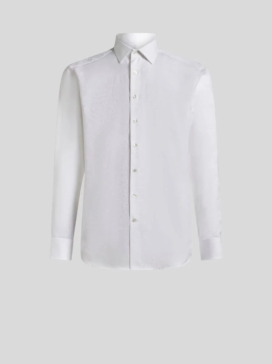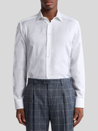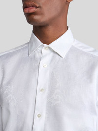 Pure cotton shirt with jacquard detailing all over. • Roma regular fit • Straight-point collar • Double-buttoned working cuffs • Made in Italy • The model is 6' 1½" (187 cm) tall and wears a size 39 PRODUCT DETAILS • 100% cotton