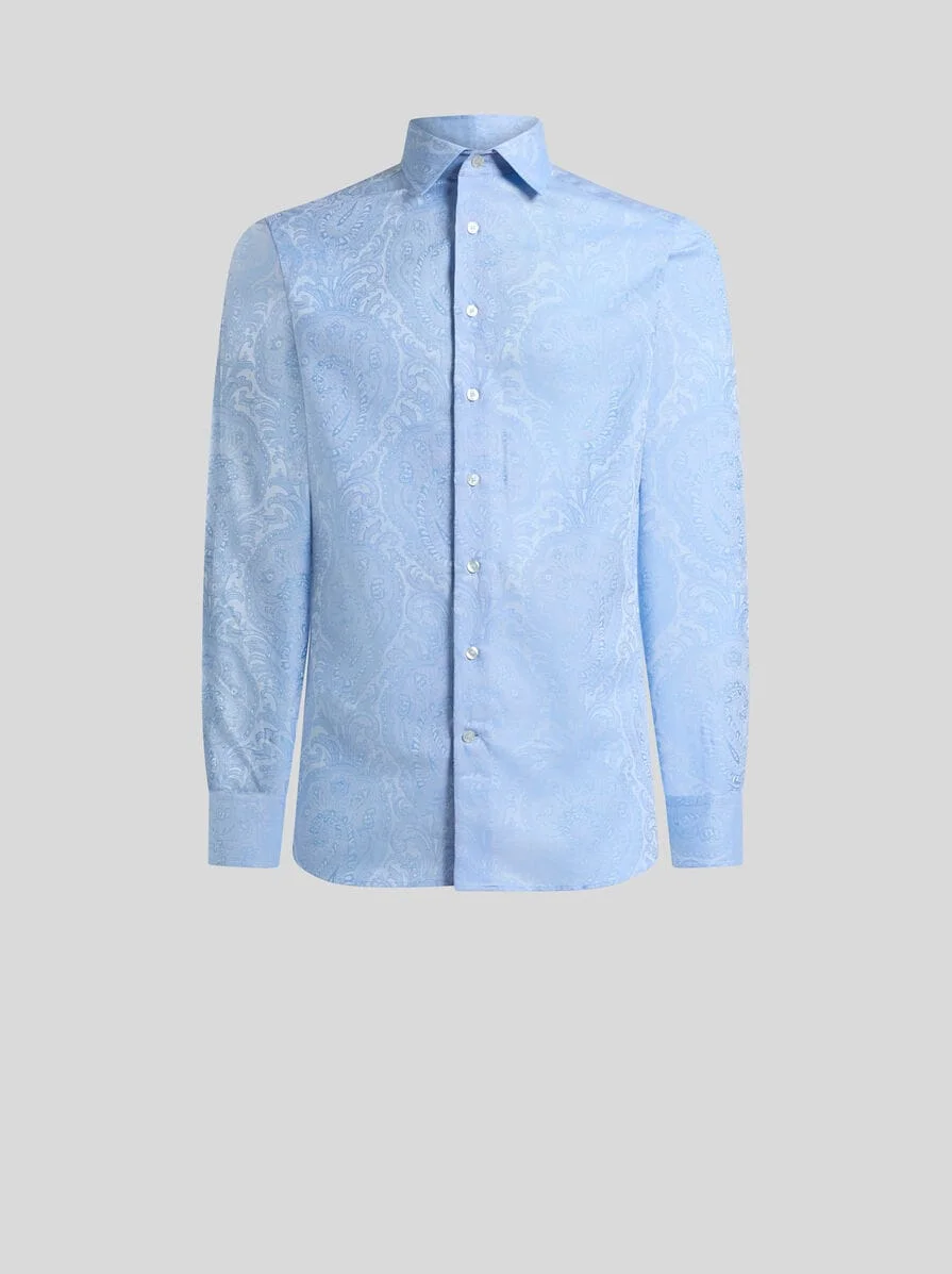 Pure cotton shirt with jacquard detailing all over. • Roma regular fit • Straight-point collar • Double-buttoned working cuffs • Made in Italy • The model is 6' 1½" (187 cm) tall and wears a size 39 PRODUCT DETAILS • 100% cotton
