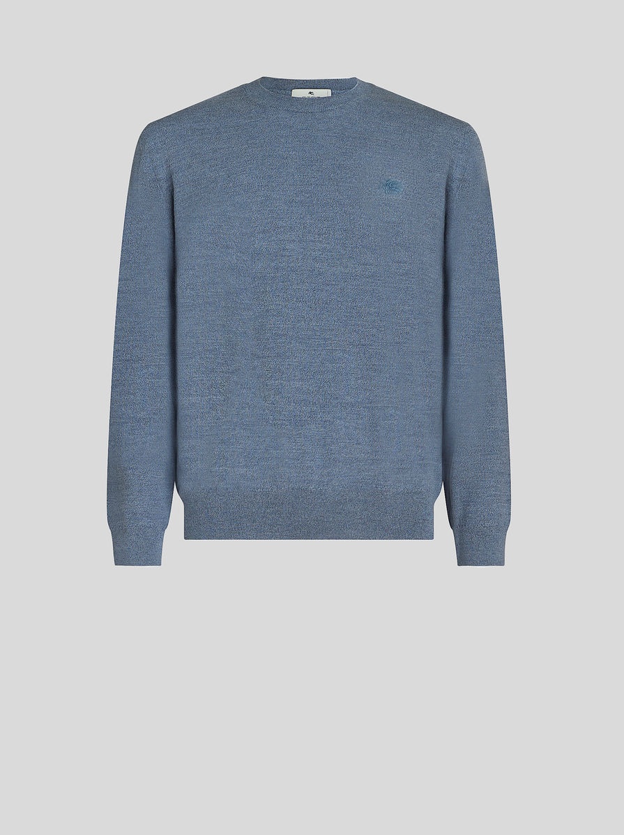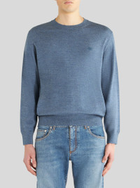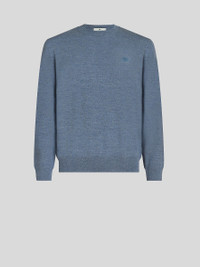 Solid colour round neck wool jumper. PRODUCT DETAILS • 100% wool • Regular fit • Round neck • Ribbed borders • Made in Italy • The model is 188 cm/74 inches tall and wears size M