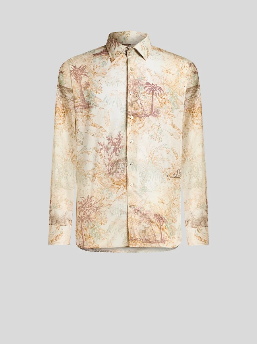 Pure cotton shirt with an all-over safari-inspired print. • Roma regular fit • Branded-button closure • Double-buttoned working cuffs • Made in Italy • The model is 6' 1½" (187 cm) tall and wears a size 39 PRODUCT DETAILS • 100% cotton