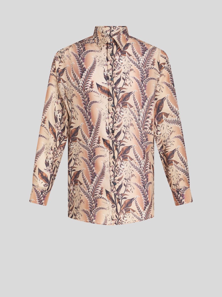 Cotton shirt with decorative, placed floral foliage print. PRODUCT DETAILS • 100% cotton