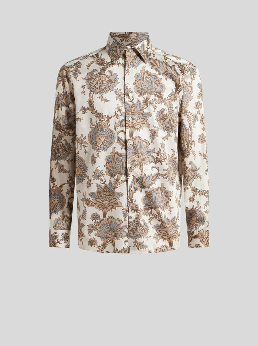 Pure cotton shirt with maxi flower print all over. • Roma fit • Straight-point collar • Branded-button closure • Three-button working cuffs • Made in Italy • The model is 6' 1½" (187 cm) tall and wears a size 39 PRODUCT DETAILS • 100% cotton