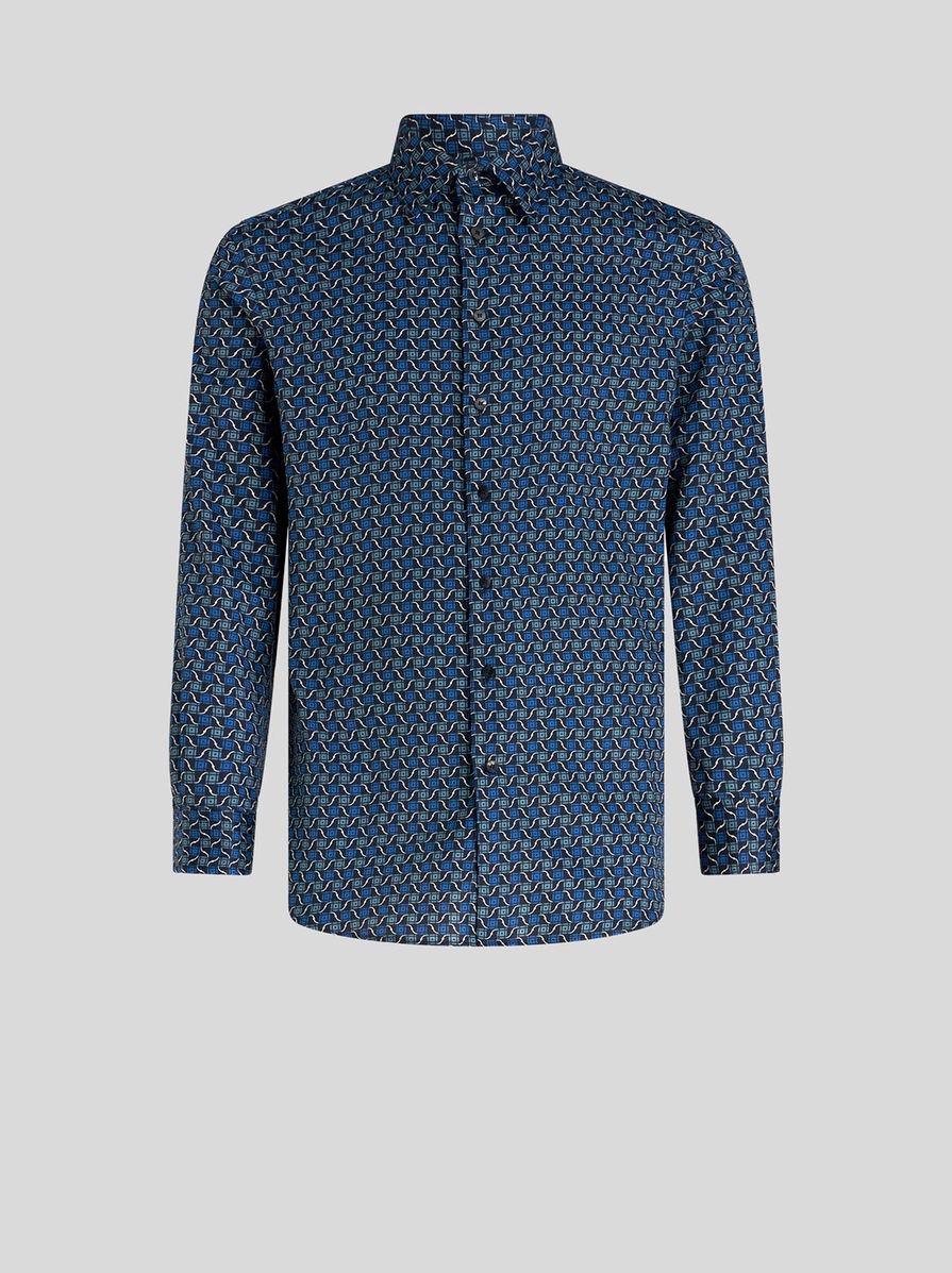 Cotton shirt embellished with an all-over tie print. PRODUCT DETAILS • 100% cotton • Regular fit • Italian collar • Cuffs with double button • Made in Italy • The model is 188 cm / 74,01 inches tall and wears size 40