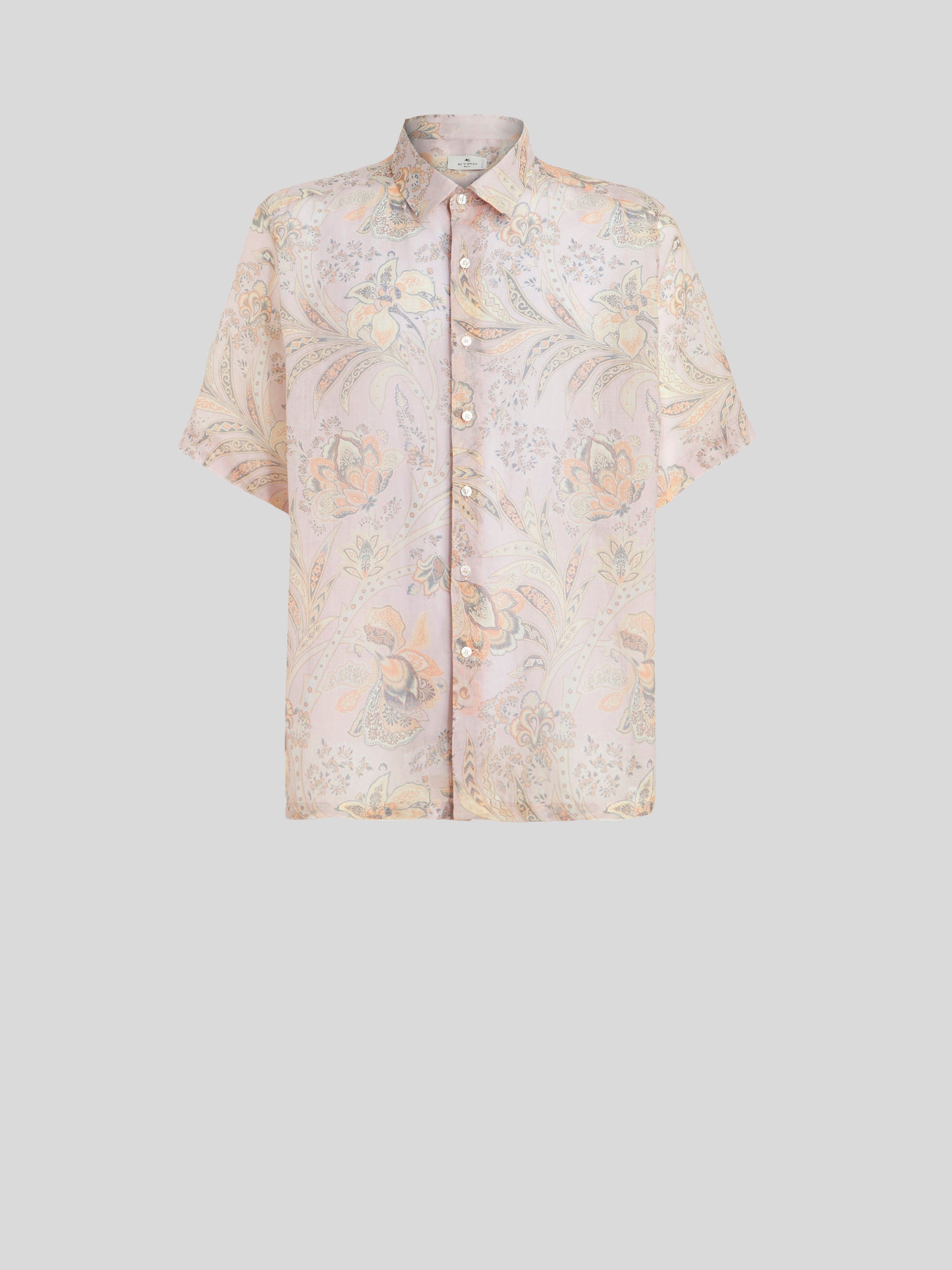 Short-sleeved ramie shirt from the Men's Spring-Summer 2023 Fashion Show collection embellished by a handmade leafy print. PRODUCT DETAILS • 100% ramie • Regular fit • Pointed collar • Short sleeves • Button fastening • Side slits • Made in Italy • The model is 188 cm tall and wears size M