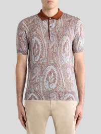 Short-sleeved polo shirt in soft knit silk, cashmere and cotton fabric. This item stands out for its iconic all-over Paisley motif enhanced by floral elements, and is complete with a contrasting plain-coloured collar. • Regular fit • Pointed collar with three buttons • Short sleeves • Made in Italy • The model is 6' 1" (186 cm) tall and wears a size M PRODUCT DETAILS • 45% silk, 37% cashmere, 18% cotton