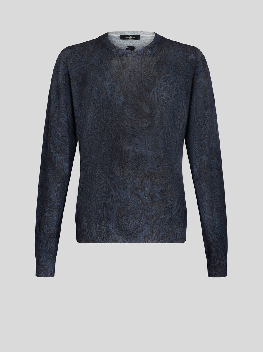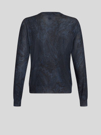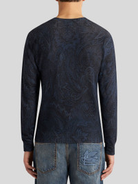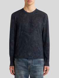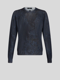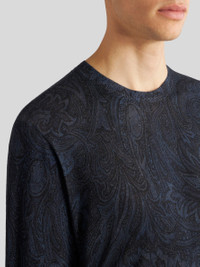 Silk and cashmere sweater with an all-over Paisley motif. This model is embellished with an embroidered Pegaso symbol and ETRO logo on the back. PRODUCT DETAILS • 55% silk, 45% cashmere