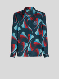 Bowling shirt featuring stylised floral patterns decorated with logo on the chest. PRODUCT DETAILS • 100% silk • Regular fit • Bowling collar • Cuffs with double button • Made in Italy • The model is 188 cm/74 inches tall and wears size M