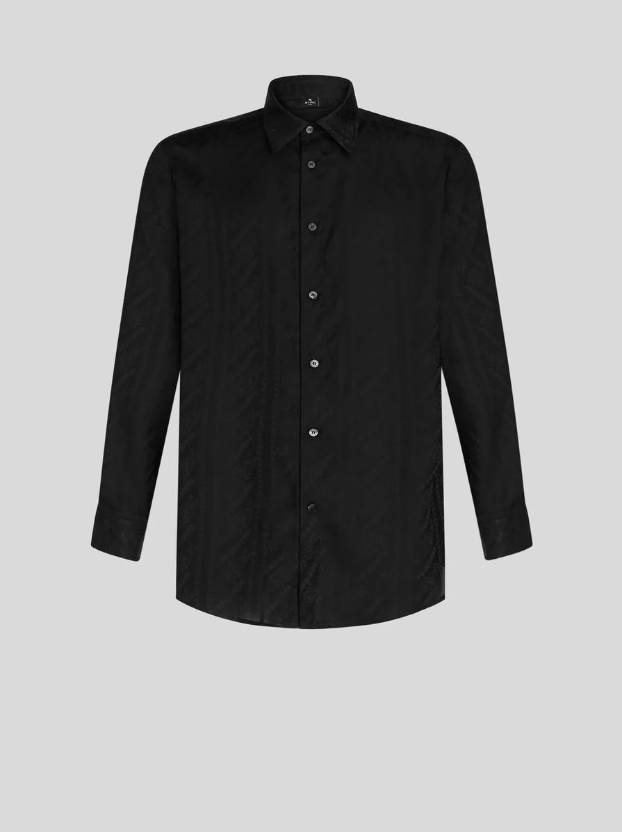 Silk jacquard shirt embellished with tone-on-tone foliage motif all over. • Loose fit • Classic collar • Working cuffs • The model is 74.01" (188 cm) tall and wears a size M • Made in Italy PRODUCT DETAILS • 100% silk