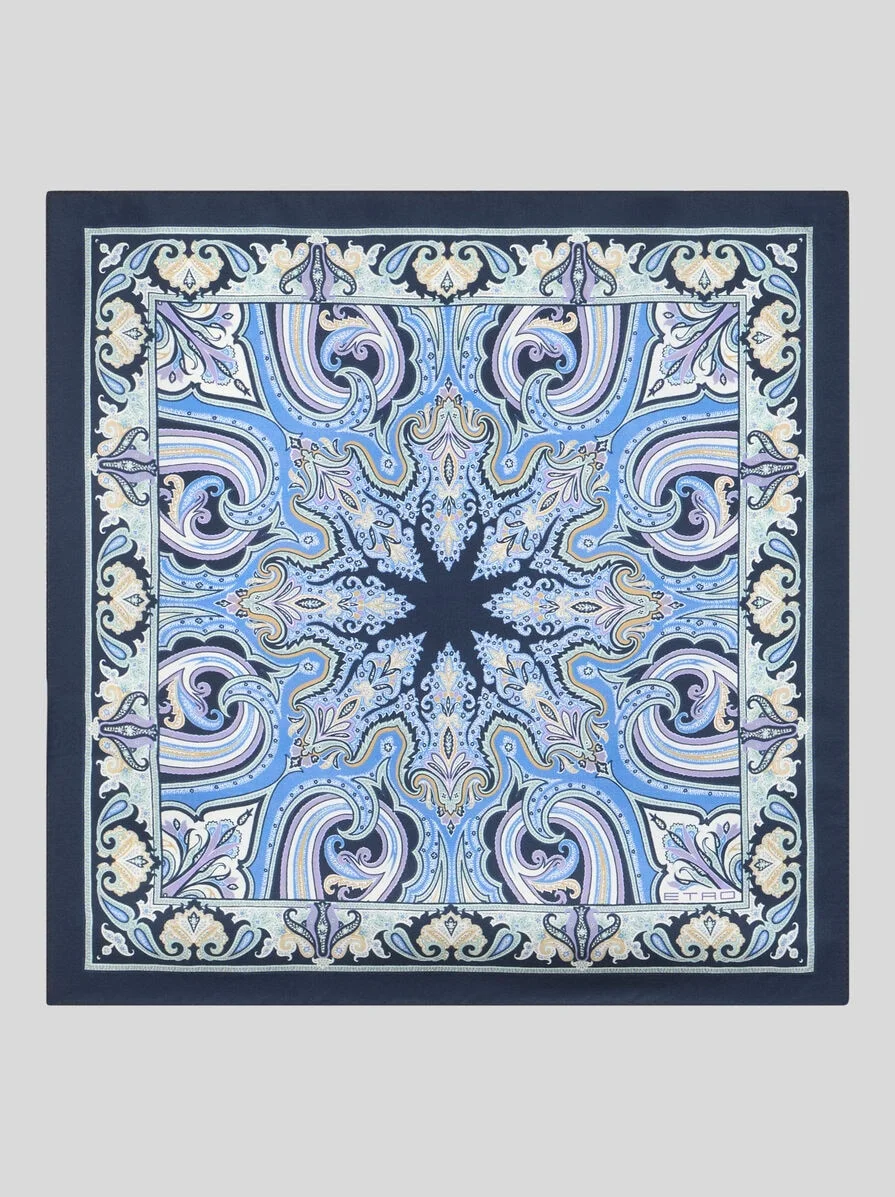 Pure silk twill pocket square with geometric Paisley motif and contrasting edges. This accessory is complete with an ETRO logo in the corner. • Size: 16.9 x 16.9 inches (43 x 43 cm) • Made in Italy PRODUCT DETAILS • 100% silk