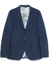 single-breasted blazer Highlights - Navy blue - Front button fastening - Chest welt pocket - Two side flap pockets - Buttoned-cuff sleeves Made in Italy Composition Lining: Viscose 100% Outer: Cotton 98%, Spandex/Elastane 2% SIZE & FIT Model measurements Height 6 ft 2 in(1.87 m) Bust/Chest 36.41 in(92.5 cm) Hips 37 in(94 cm) Waist 29.52 in(75 cm) FittingInformation Designed for a slim fit, offering a comfortable fit that sits just away from the body The vented hem offers movement at the rear Made from a midweight non-stretch fabric