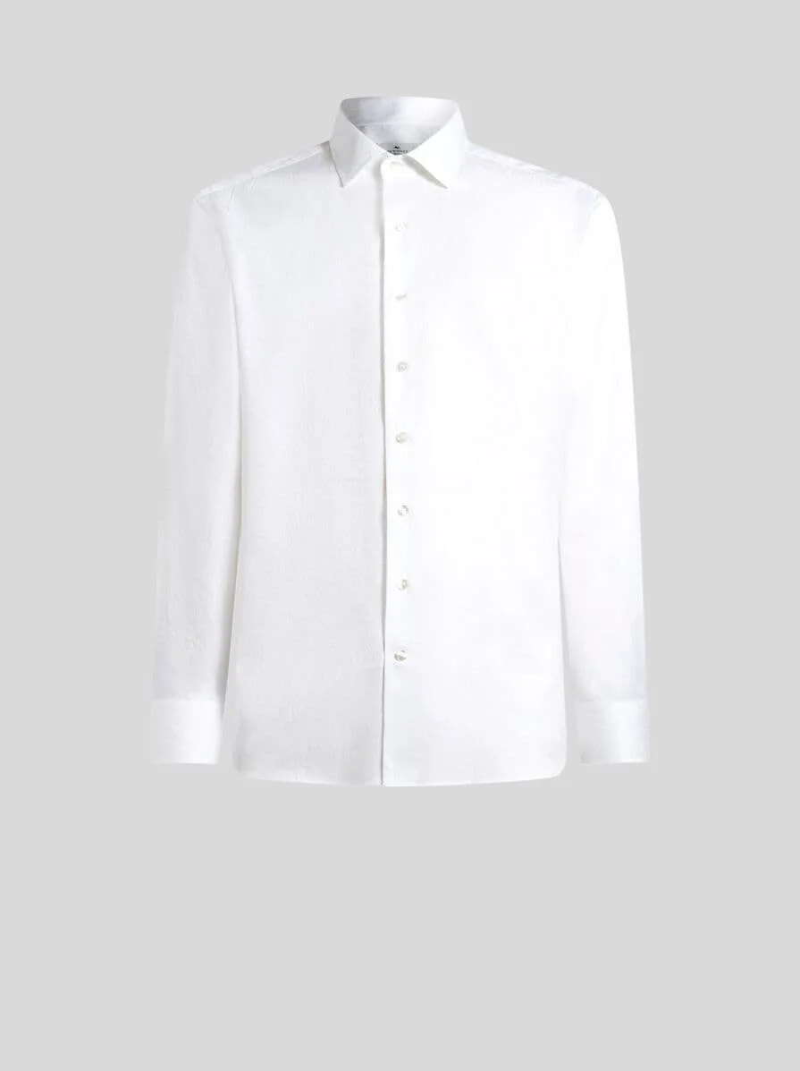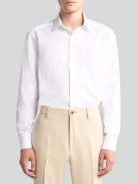 Pure cotton shirt with tonal jacquard motif all over. • Roma fit • Straight-point collar • Button closure • Three-button working cuffs • Made in Italy • The model is 6' 1½" (187 cm) tall and wears a size 39 PRODUCT DETAILS • 100% cotton