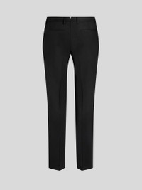 Slim-fit trousers in stretch wool fabric with silk details. This model features pressed creases. • Slim fit • Concealed zip closure • Side slip pockets • Rear welt pockets • Made in Italy • The model is 6’1”(186 cm) tall and wears a size 48 (IT) PRODUCT DETAILS • 97% wool, 3% elastane • Ribbon: 78% silk, 22% polyester