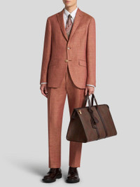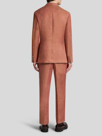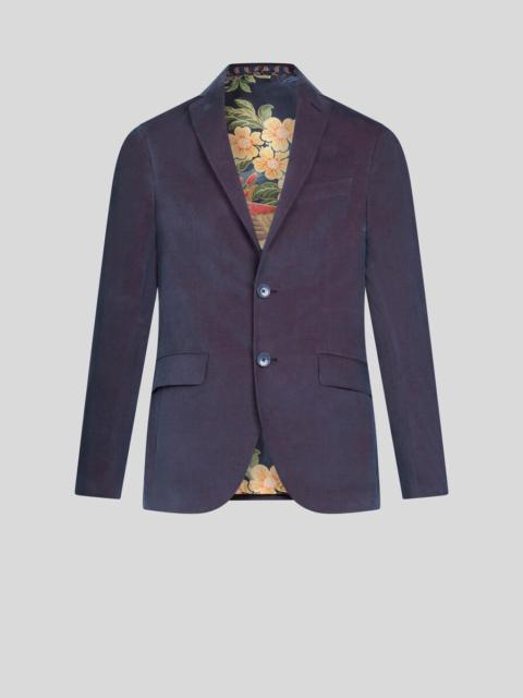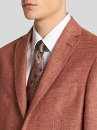 Slub linen/cotton-blend single-breasted blazer. This piece features a nature-inspired print on the lining. The contrasting undercollar and inner collar complement the design. • Roma regular fit • Classic lapels • Single-breasted two-button closure • Welt breast pocket • Front pockets with flap • Cuffs with four buttons • Made in Italy • The model is 6' 1½" (187 cm) tall and wears a size 48 PRODUCT DETAILS • 58% linen, 42% cotton • Bodice lining: 100% viscose • Sleeve lining: 100% viscose