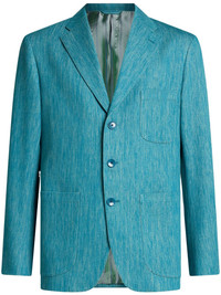 slub-texture blazer Highlights - Teal blue - Cotton - Slub texture - Front button fastening - Notched lapels - Long sleeves - Buttoned cuffs - Three front patch pockets - English rear vents - Striped lining - Curved hem Made in Italy Composition Lining: Viscose 52%, Acetate 48% Outer: Cotton 100%
