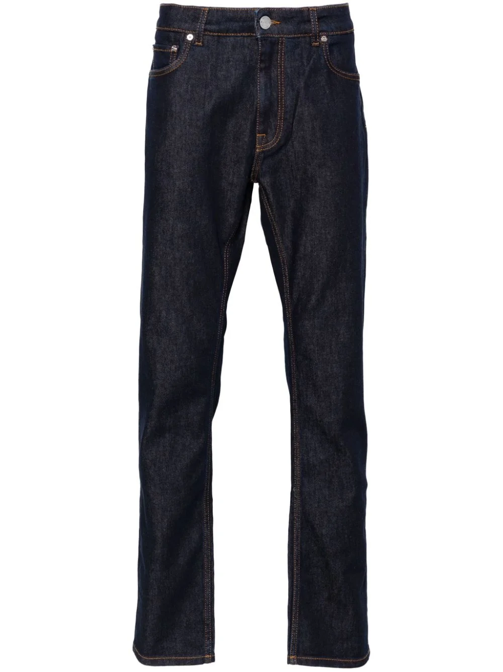 straight jeans Highlights - Indigo blue - Stretch-cotton - Denim - Front button and zip fastening - Contrast stitching - Belt loops - Classic five pockets - Logo patch to the rear - Straight leg Made in Italy Composition Cotton 99%, Elastane 1% SIZE & FIT Model measurements Height 6 ft 2 in(1.87 m) Bust/Chest 38.18 in(97 cm) Hips 36.61 in(93 cm) Waist 29.13 in(74 cm) FittingInformation Designed with a straight leg, these jeans allow for an unrestricted and comfortable fit over the leg Constructed from stretch denim, this piece offers a stretch fit with durability