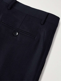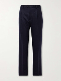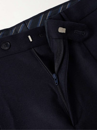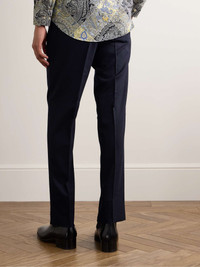 Etro's pleated trousers are a comfortable and versatile classic that'll work well for the office or dinner. Cut in Italy from wool-flannel, they're partially lined with satin for a smooth drape and have unfinished hems so you can customise the break. Size & Fit - Fits true to size. Take your normal size - Regular-straight leg, mid-rise style - Unfinished hems; alter to fit - Mid-weight, non-stretchy fabric - Model is shown wearing an IT 46 - Model measures: waist size 30, height 6'2"/ 188cm Details & Care - Navy wool-blend flannel - Belt loops, two on-seam pockets, two back buttoned welt pockets, unfinished hems - Button, hook and zip fastening - 98% wool, 2% elastane; lining: 60% acetate, 40% viscose - Dry clean