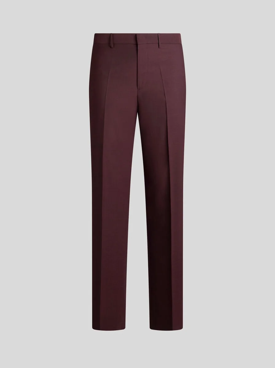 Tailored straight-leg trousers in plain-coloured pure wool fabric. The pressed creases enhance the model. • Easy fit • Side slip pockets • Concealed button and zip closure • One rear welt pocket • One rear pocket with flap and button • Made in Italy • The model is 6' 1" (186 cm) tall and wears a size 48 PRODUCT DETAILS • 100% wool • Lining: 60% acetate, 40% viscose