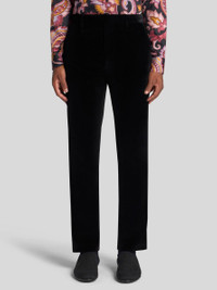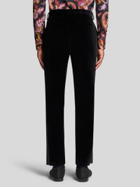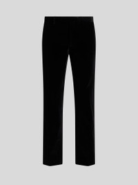 Straight-leg evening trousers with satin side band detail. The rear and side slip pockets complete the garment. • Slim fit • Welt side slip pockets • Rear welt pockets • Hidden closure • Belt loops • Side band detail down the leg • Made in Italy • The model is 6' 1½" (187 cm) tall and wears a size 48 PRODUCT DETAILS • 98% cotton, 2% elastane • Band: 78% silk, 22% polyester