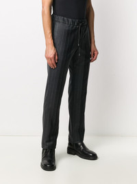 striped drawstring-waist trousers Highlights - Dark grey - Wool - Stripe detailing - Drawstring fastening waist - Rear welt pocket - Straight leg Made in Italy Composition Wool 100% SIZE & FIT Model measurements Height 6 ft 2 in(1.87 m) Bust/Chest 37.79 in(96 cm) Hips 37.79 in(96 cm) Waist 30.31 in(77 cm) Washing instructions Dry Clean Only