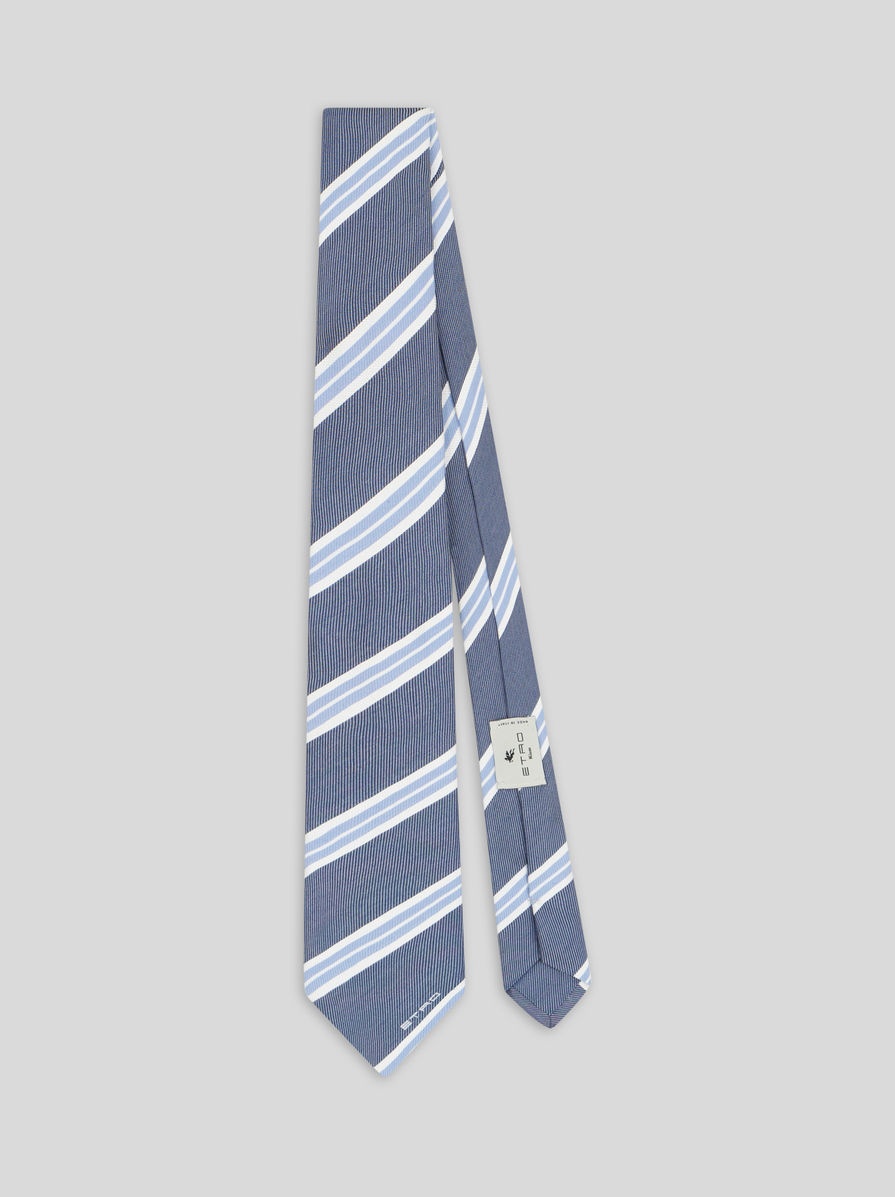 Silk and cotton jacquard tie with striped pattern and ETRO logo. PRODUCT DETAILS • 62% silk, 38% cotton • Made in Italy
