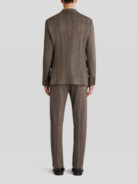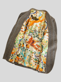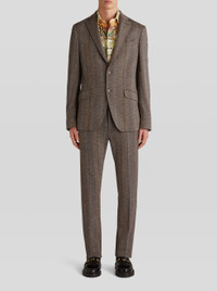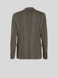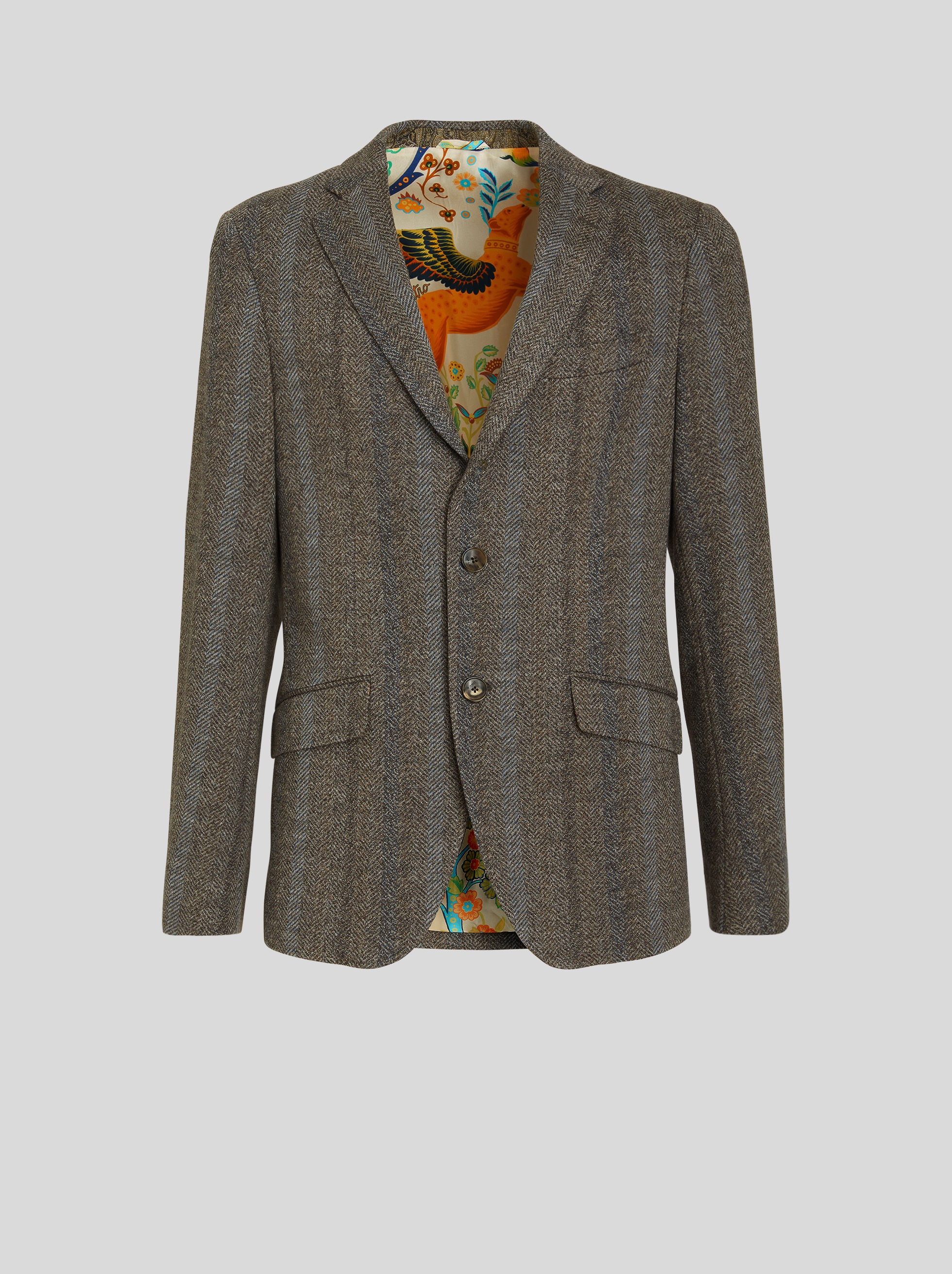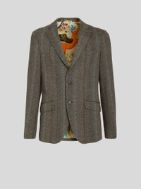 Wool and cotton jersey jacket featuring a ton-sur-ton striped pattern and a tieprint undercollar with floral Paisley pattern. The jacket has a lining with placed leafy floral print with mythological animals and Pegaso. PRODUCT DETAILS • Exterior: 43% wool, 40% cotton, 17% polyester • Body lining: 52% cupra, 48% viscose • Sleeve lining: 57% viscose, 43% polyester • Regular fit • Single-breasted fastening • Polished horn buttons • Piped breast pocket • Front pockets with flap • Piped inside pockets • Rear slits • Made in Italy • The model is 187 cm tall and wears size 48 Sku: 222U1187Q00500002