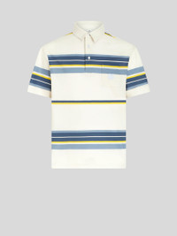 Cotton pique polo shirt with decorative striped pattern. This model is embellished with an embroidered Pegaso symbol and ETRO logo on the chest. PRODUCT DETAILS • 100% cotton • Regular fit • Breast pocket • Made in Italy • The model is 188 cm tall and wears a size M