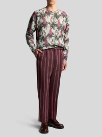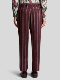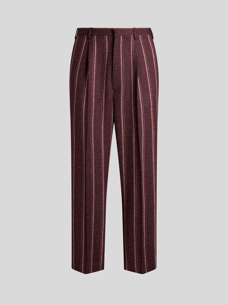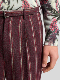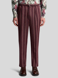 Regular-fit wool-blend jacquard trousers with striped pattern,, pleats and pressed creases. This model features a matching belt with an adjustable metal prong buckle. PRODUCT DETAILS • 80% wool, 20% polyamide