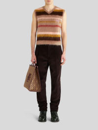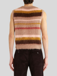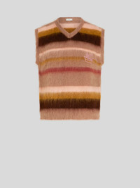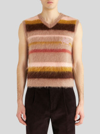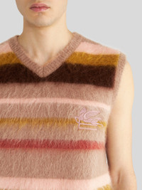 Sleeveless, V-neck mixed wool and mohair waistcoat featuring a multi-coloured horizontal stripe print and logo with Pegaso on the chest. PRODUCT DETAILS • 67% mohair, 28% nylon, 5% wool • Regular fit • V neck • Made in Italy • The model is 188 cm/74 inches tall and wears size M
