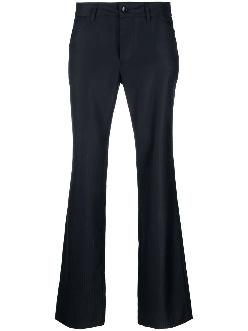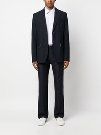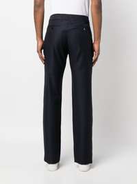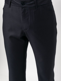 striped wool trousers Highlights - Midnight blue - Virgin wool - Vertical stripe pattern - Belt loops - Front button and zip fastening - Two side inset pockets - Rear button-fastening jetted pocket - Straight leg - Straight hem Made in Italy Composition Lining: Acetate 60%, Viscose 40% Outer: Virgin Wool 100% SIZE & FIT Model measurements Height 6 ft 1 in(1.85 m) Bust/Chest 38.58 in(98 cm) Hips 37 in(94 cm) Waist 30.31 in(77 cm) FittingInformation Designed for a straight-leg, allowing for an unrestricted and comfortable fit over the leg Made from a midweight non-stretch fabric This piece fits true to size – take your usual size Washing instructions Dry Clean Only