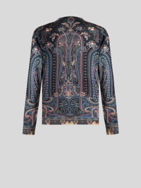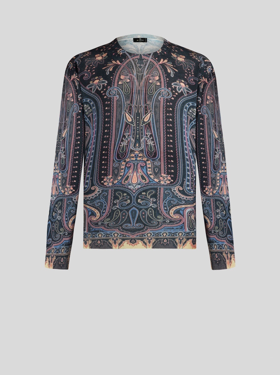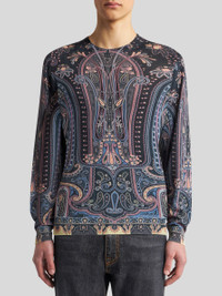Silk and cashmere sweater, embellished with Paisley print all over. PRODUCT DETAILS • 55% silk, 45% cashmere
