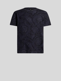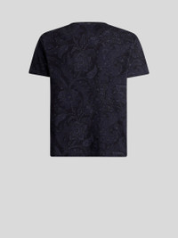 Cotton T-shirt with decorative, tone-on-tone floral Paisley print all over. This model is embellished with a tone-on-tone embroidered Pegaso symbol and ETRO logo on the chest. PRODUCT DETAILS • 100% cotton